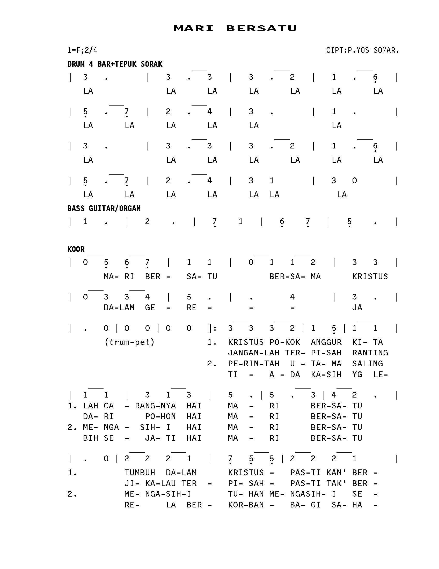 TEKS LAGU. MARI BERSATU. GATHER 1. HAL. 238