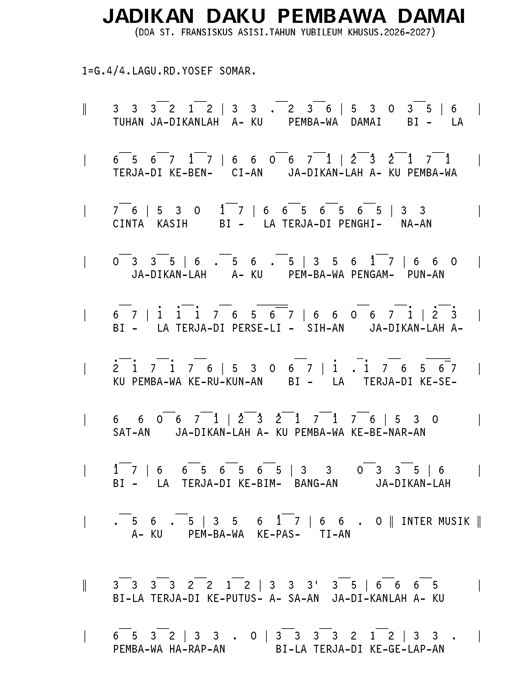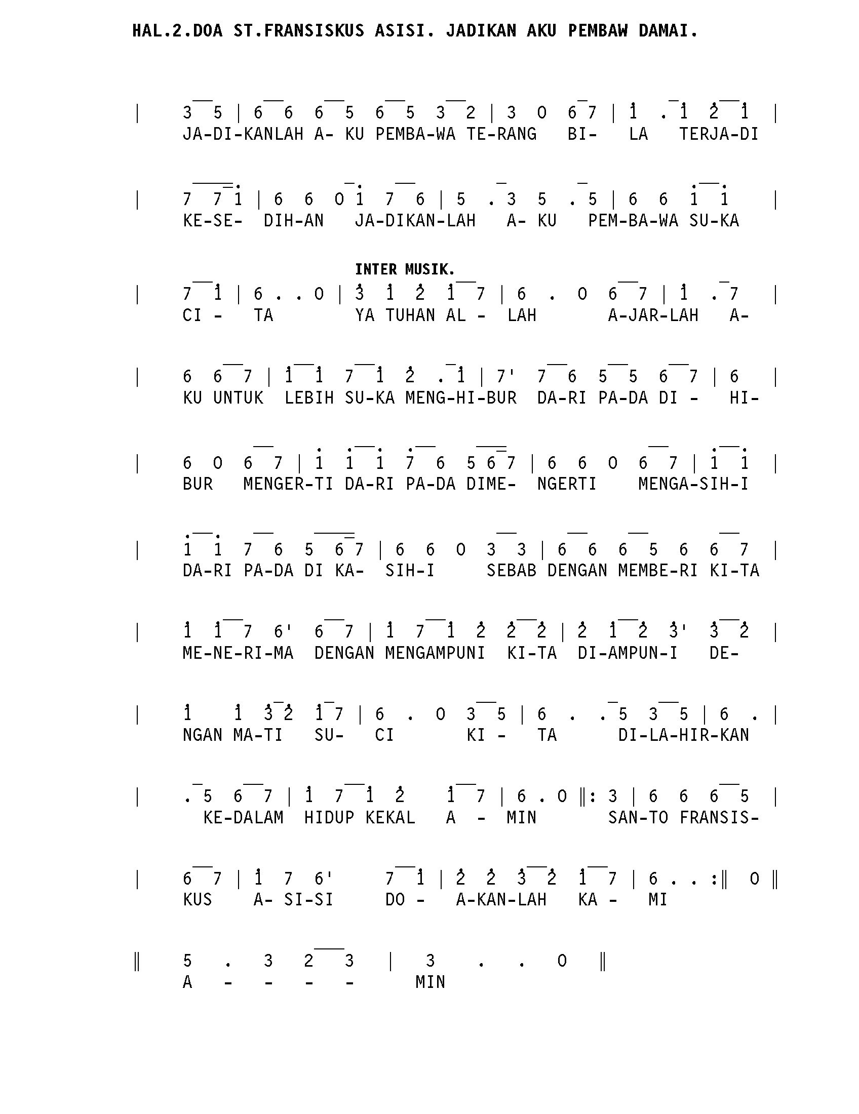 Jadikan Aku Pembawa Damai. Doa St. Fransiskus Asisi.