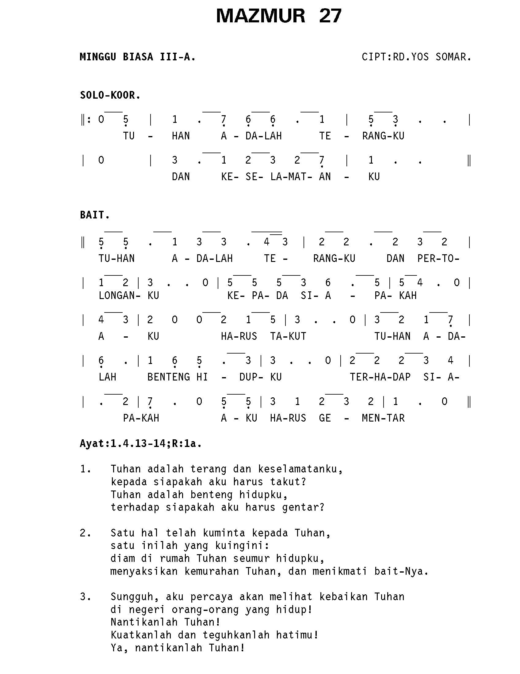 GATHER A. HAL. 153 Kumpulan Nyanyian MAZMUR A YouTube Link REFREN. TUHAN ADALAH TERANGKU DAN KESELAMATANKU