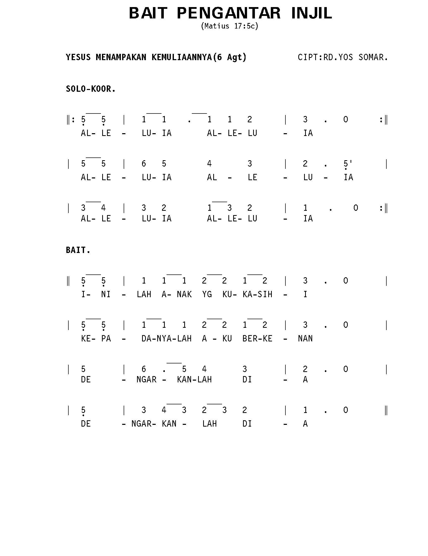 HR. YESUS MENAMPAKKAN KEMULIAANNYA (6 AGT.). MATIUS 17:5C. HAL. 137