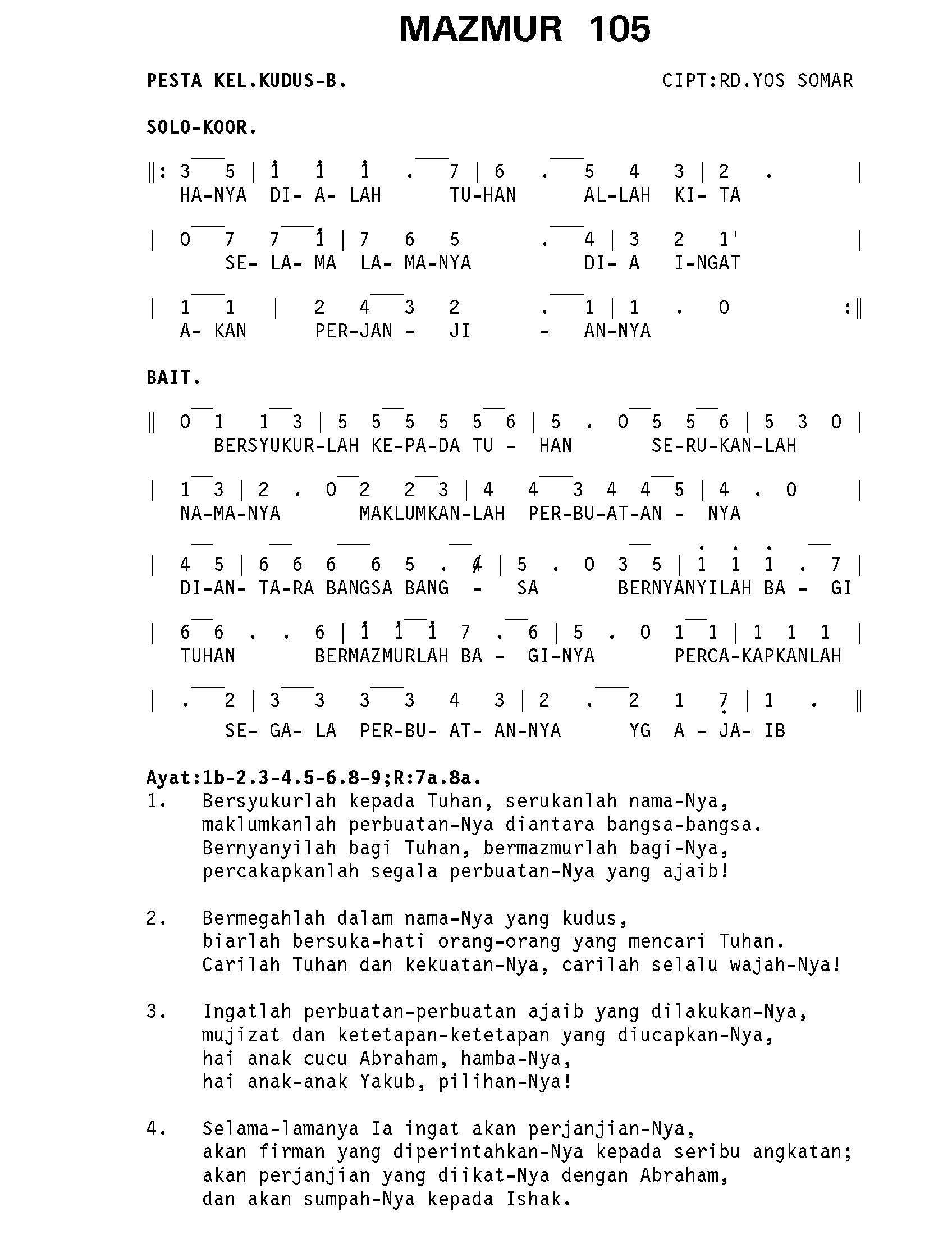 GATHER B. HAL. 27 Kumpulan Nyanyian MAZMUR B YouTube Link REFREN. HANYA DIALAH TUHAN ALLAH KITA SELAMA LAMANYA DIA INGAT AKAN PERJANJIANN…