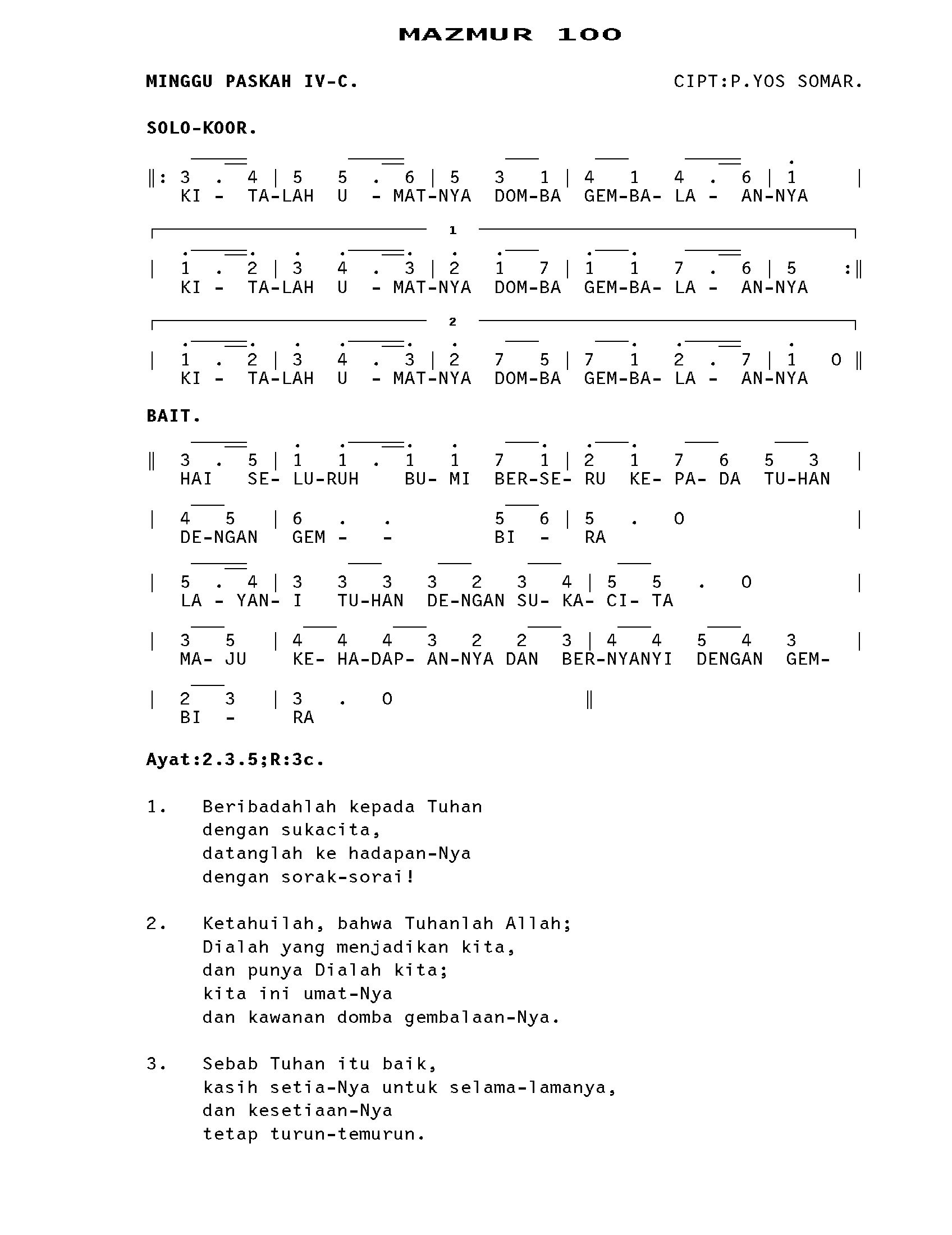 GATHER C. HAL. 87 Kumpulan Nyanyian MAZMUR C YouTube Link REFREN. KITALAH UMAT NYA DOMBA GEMBALAANNYA